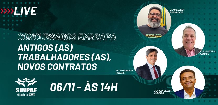 Na próxima quinta-feira, 6 de novembro, às 14h, o SINPAF realizará uma live para tirar dúvidas dos empregados e empr...